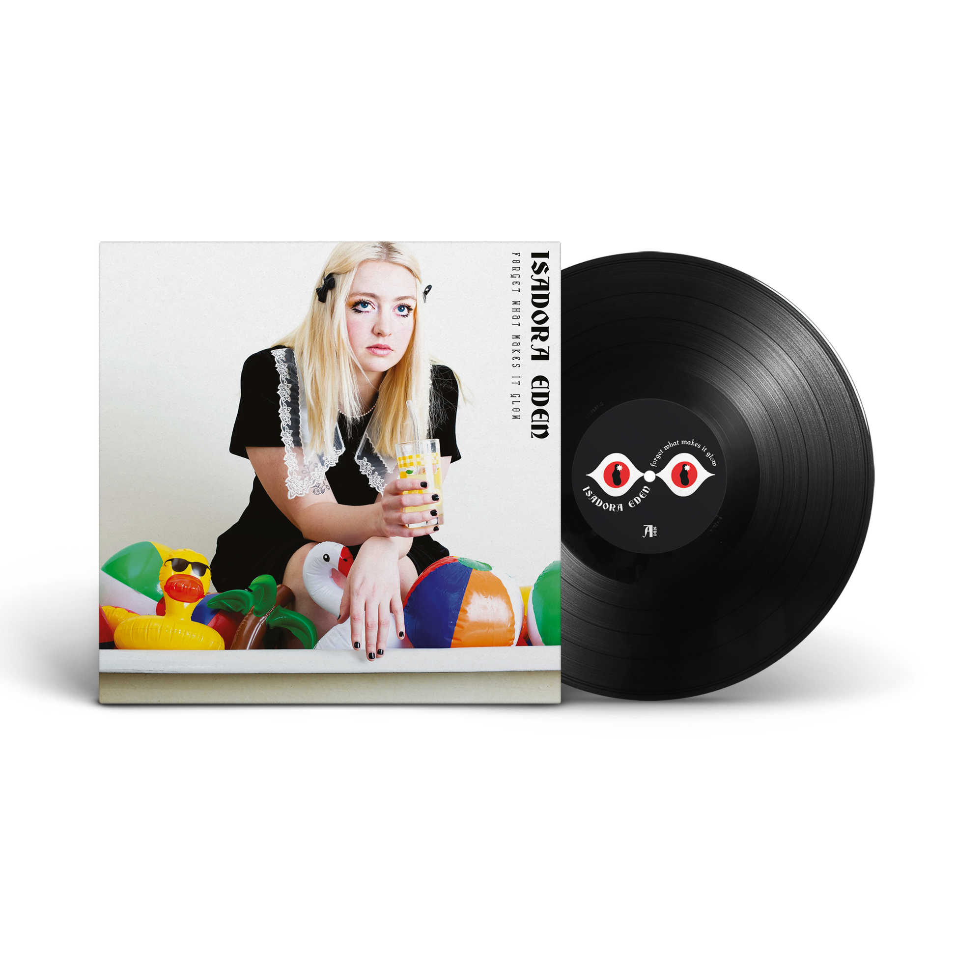 'forget what makes it glow' 12" vinyl, the debut LP by Dollpile. Includes a signed cover, additional art, full lyrics, and stickers. This recorded was recorded and released under our old name Isadora Eden.