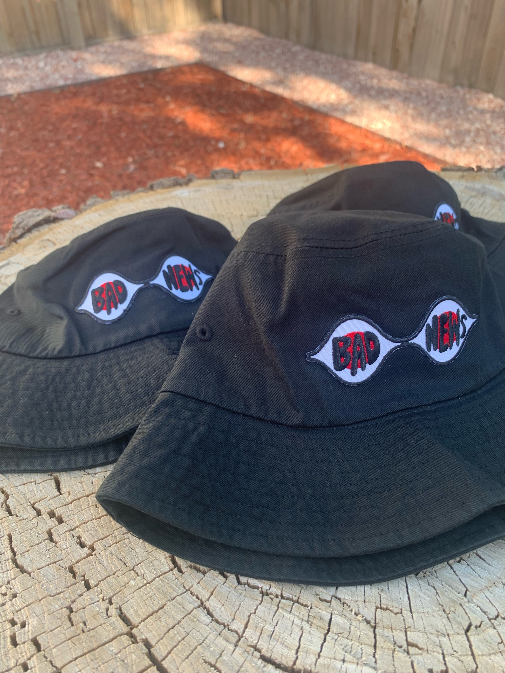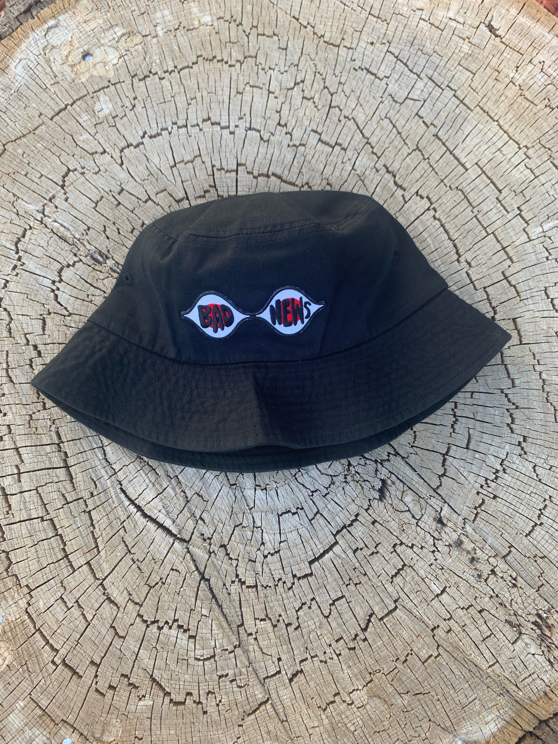 chapéu de balde bordado com olhos de 'más notícias' do videoclipe de bloodymary